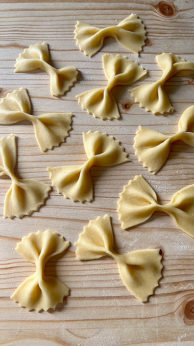Grazie a loro apprezziamo i gesti lenti ricordandoci che, nonostante la tecnologia, creare qualcosa a partire dalle nostre mani ha un valore immenso. Dall’altra parte con la pasta fresca possiamo sbizzarrirci nel creare infinite forme e colori, non bisogna mai fossilizzarsi sulla tradizione.